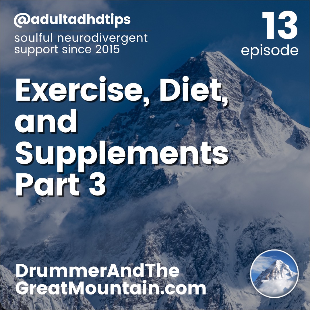 This podcast is an audio companion to the book “The Drummer and the Great Mountain – A Guidebook to Transforming Adult ADD / ADHD.” This is part one of our discussion on chapter 9, “Exercise, Diet, and Supplements.”