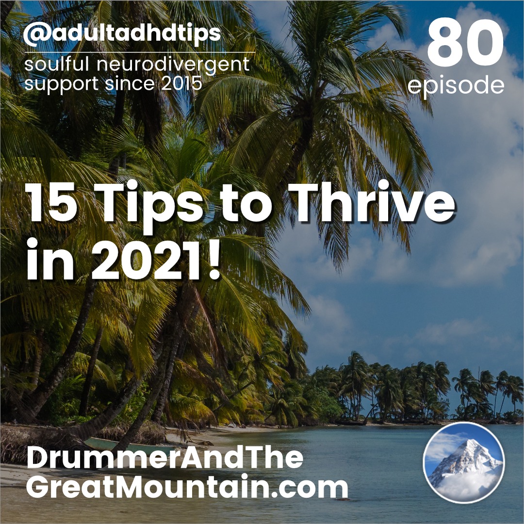 Adult ADHD ADD Tips and Support Podcast – 15 Tips to Thrive in 2021. This podcast is an audio companion to the book “The Drummer and the Great Mountain – A Guidebook to Transforming Adult ADD / ADHD.”