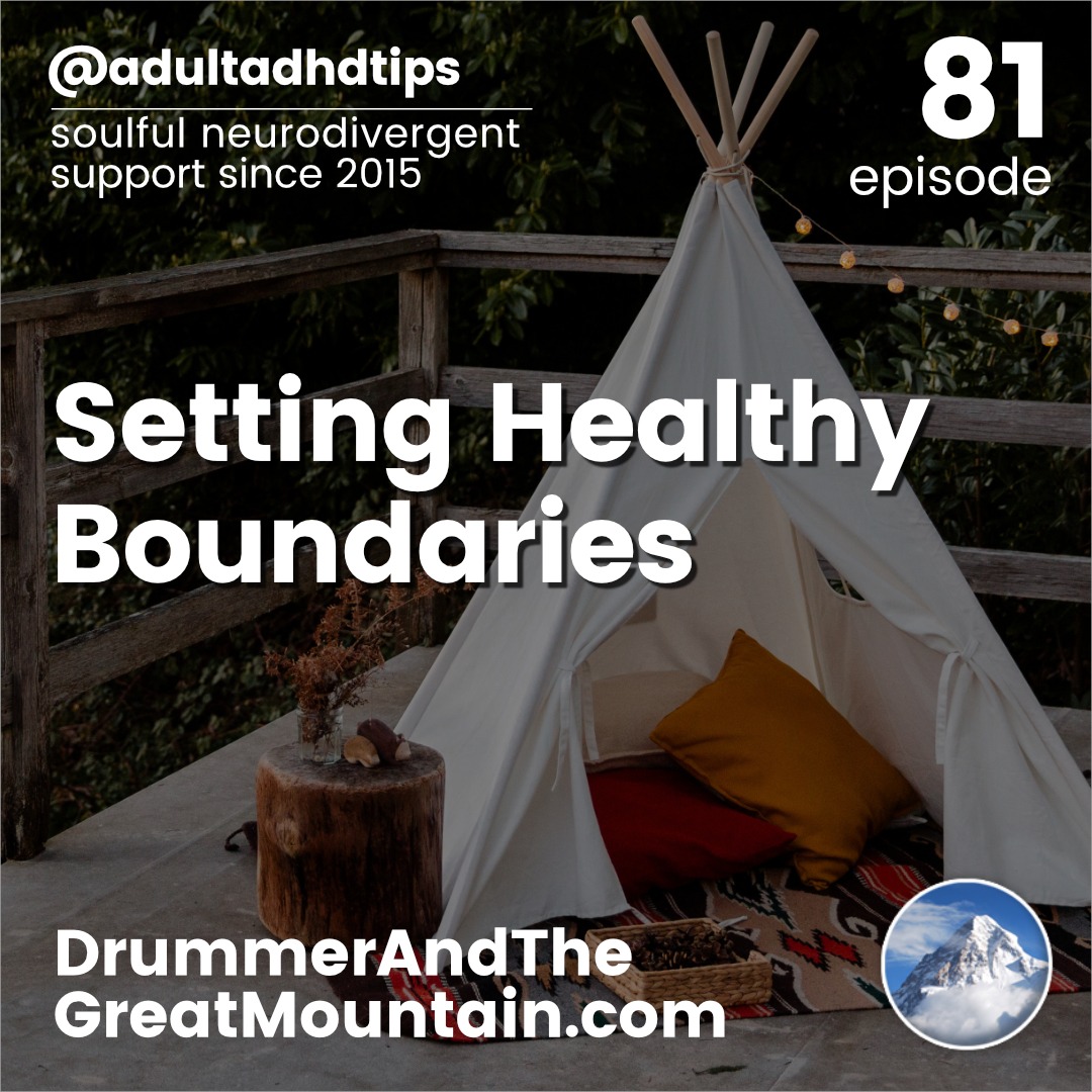 Adult ADHD ADD Tips and Support Podcast – Setting Healthy Boundaries. This podcast is an audio companion to the book “The Drummer and the Great Mountain – A Guidebook to Transforming Adult ADD / ADHD.”