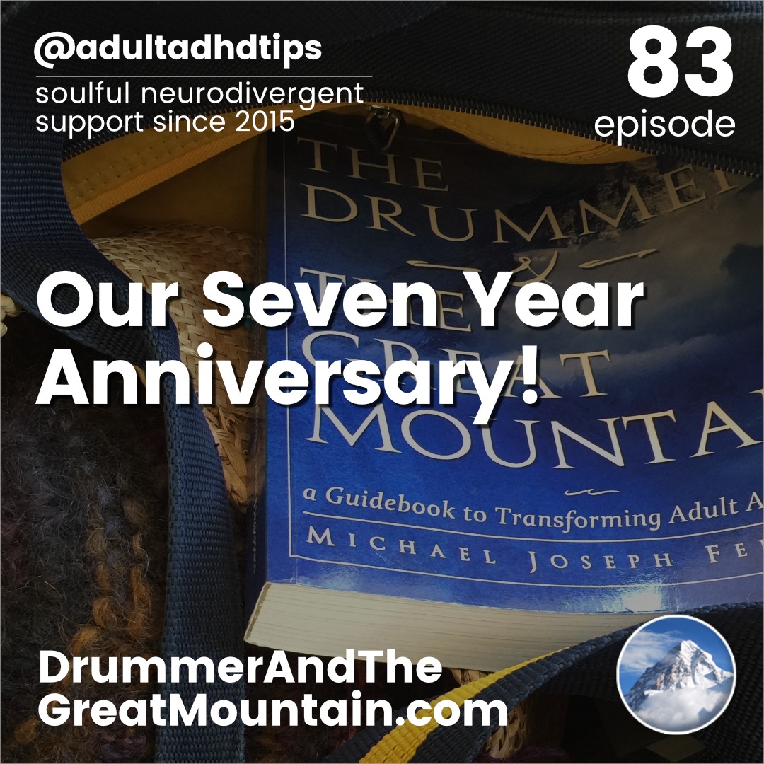 Adult ADHD ADD Tips and Support Podcast – Our Seven Year Anniversary! This podcast is an audio companion to the book “The Drummer and the Great Mountain – A Guidebook to Transforming Adult ADD / ADHD.”