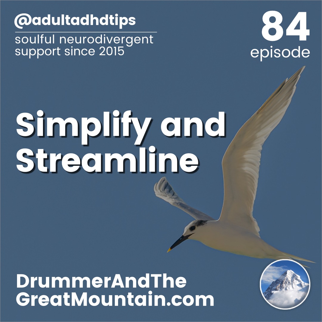 Adult ADHD ADD Tips and Support Podcast – Simplify and Streamline. This podcast is an audio companion to the book “The Drummer and the Great Mountain – A Guidebook to Transforming Adult ADD / ADHD.”