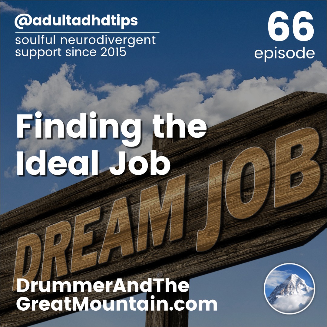 Adult ADHD ADD Tips and Support Podcast – Finding the Ideal Job. This podcast is an audio companion to the book “The Drummer and the Great Mountain – A Guidebook to Transforming Adult ADD / ADHD.”