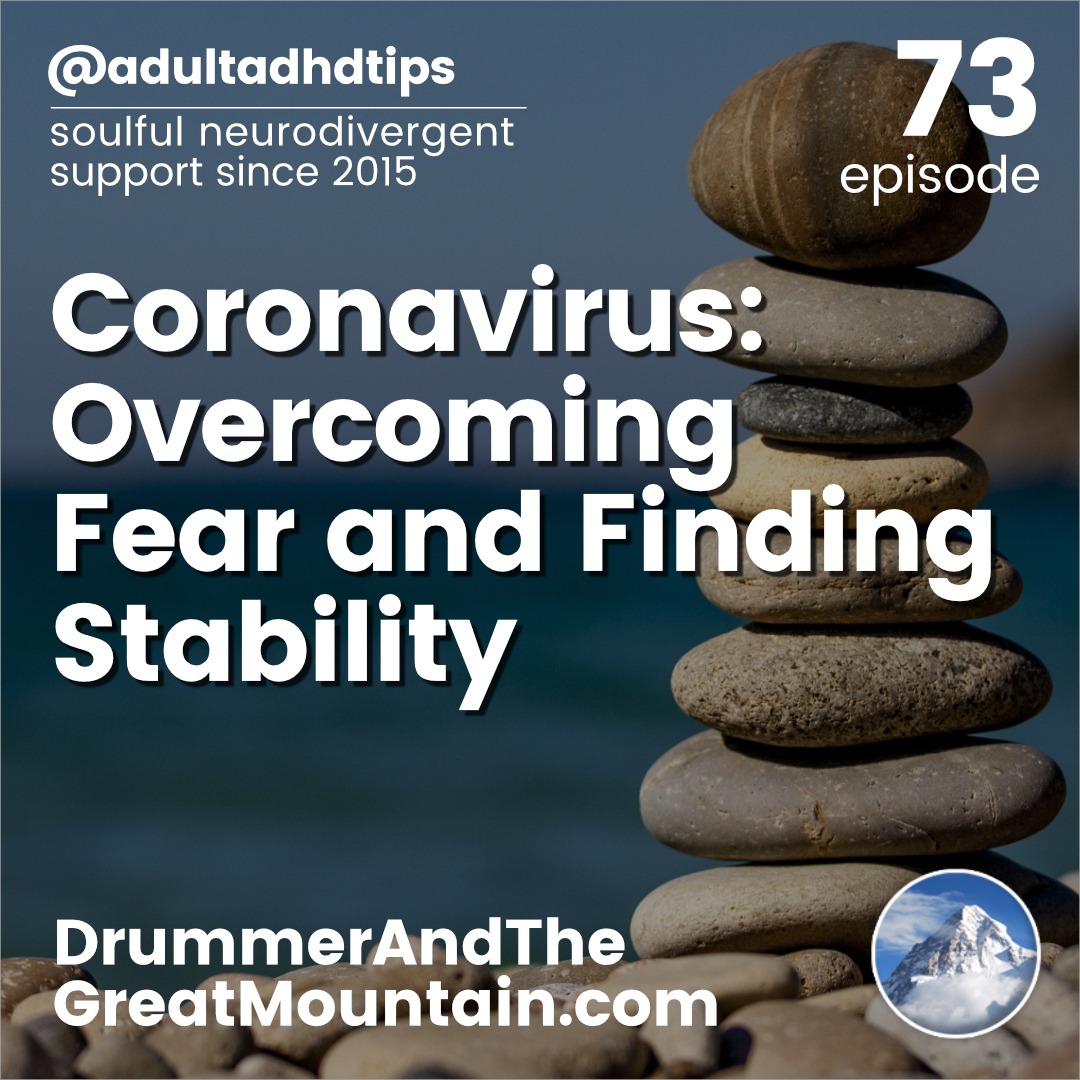 Adult ADHD ADD Tips and Support Podcast – Coronavirus: Overcoming Fear and Finding Stability. This podcast is an audio companion to the book “The Drummer and the Great Mountain – A Guidebook to Transforming Adult ADD / ADHD.”