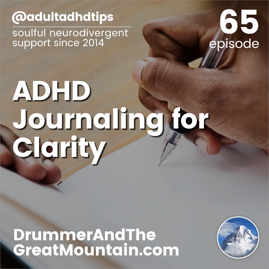 Adult ADHD ADD Tips and Support Podcast – Journaling For Clarity. This podcast is an audio companion to the book “The Drummer and the Great Mountain – A Guidebook to Transforming Adult ADD / ADHD.”