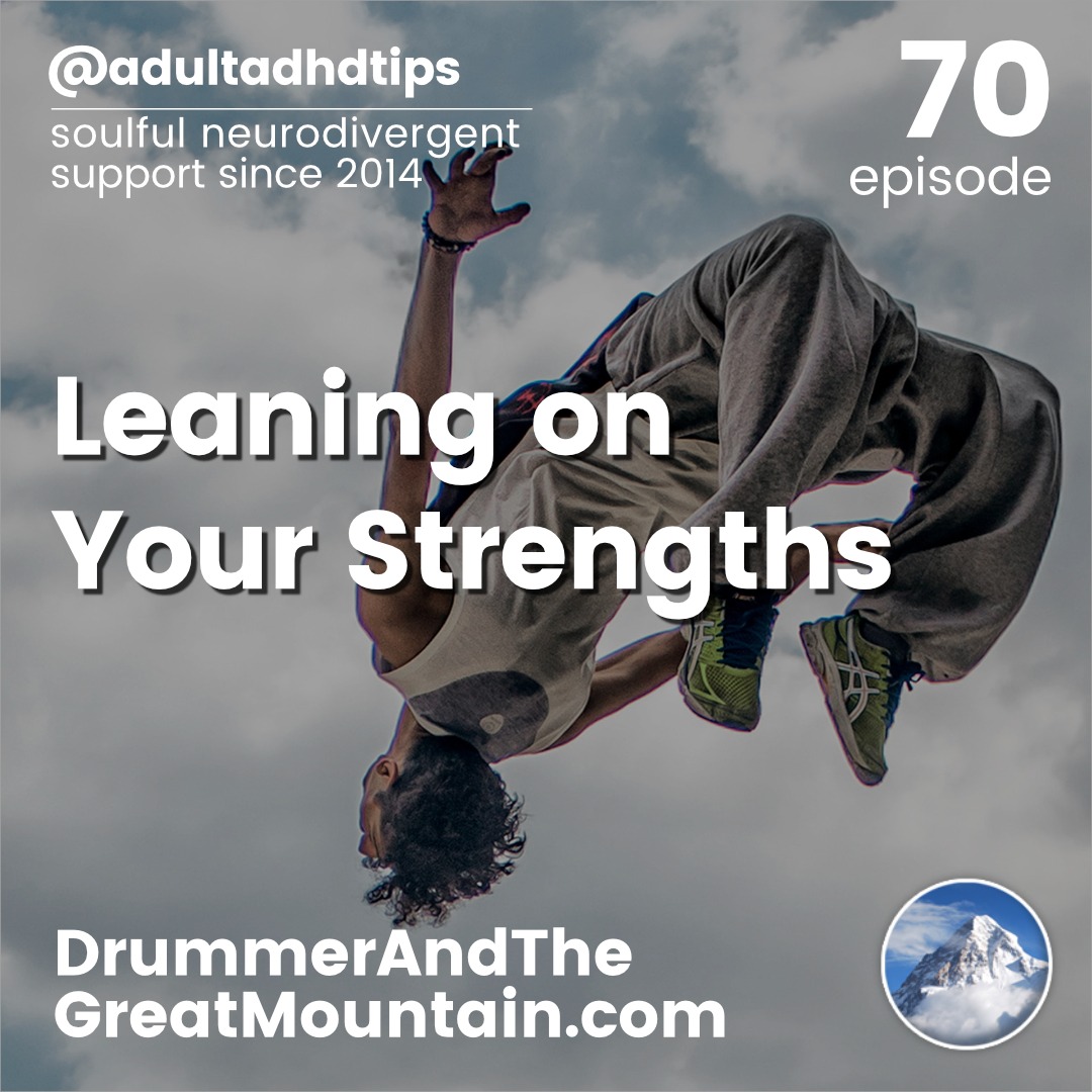 Adult ADHD ADD Tips and Support Podcast – Leaning on Your Strengths. This podcast is an audio companion to the book “The Drummer and the Great Mountain – A Guidebook to Transforming Adult ADD / ADHD.”