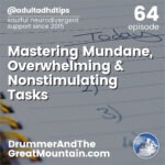 Adult ADHD ADD Tips and Support Podcast – Mastering Mundane, Overwhelming & Nonstimulating Tasks. This podcast is an audio companion to the book “The Drummer and the Great Mountain – A Guidebook to Transforming Adult ADD / ADHD.” In this…