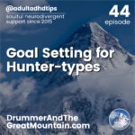 Goal Setting for Hunter-types. This podcast is an audio companion to the book “The Drummer and the Great Mountain – A Guidebook to Transforming Adult ADD / ADHD.” In this podcast we’ll explore “Goal Setting For Hunter-types” — why it’s…